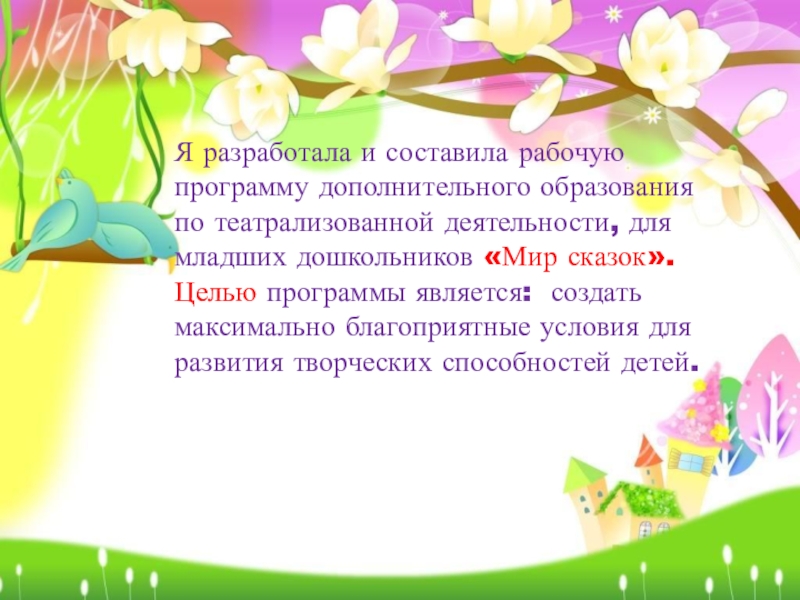 Слайд 23Я разработала и составила рабочую программу дополнительного образования по театрализованной деятельности,