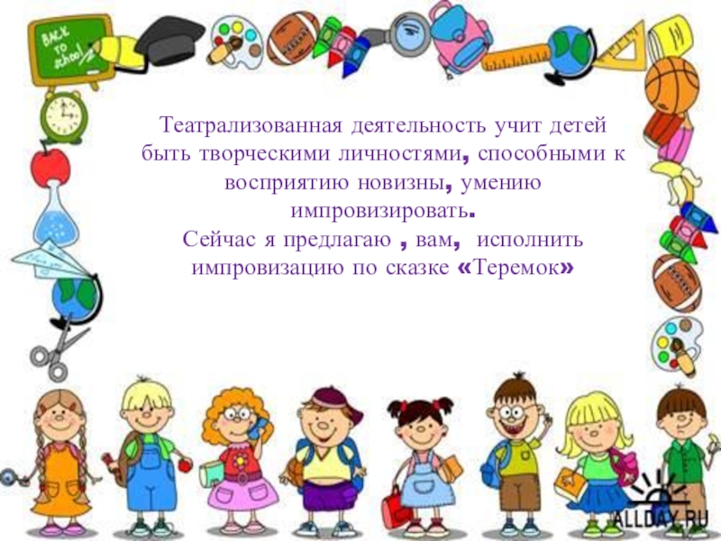 Сейчас я предлагаю , вам, исполнить импровизацию по сказке «Теремок»