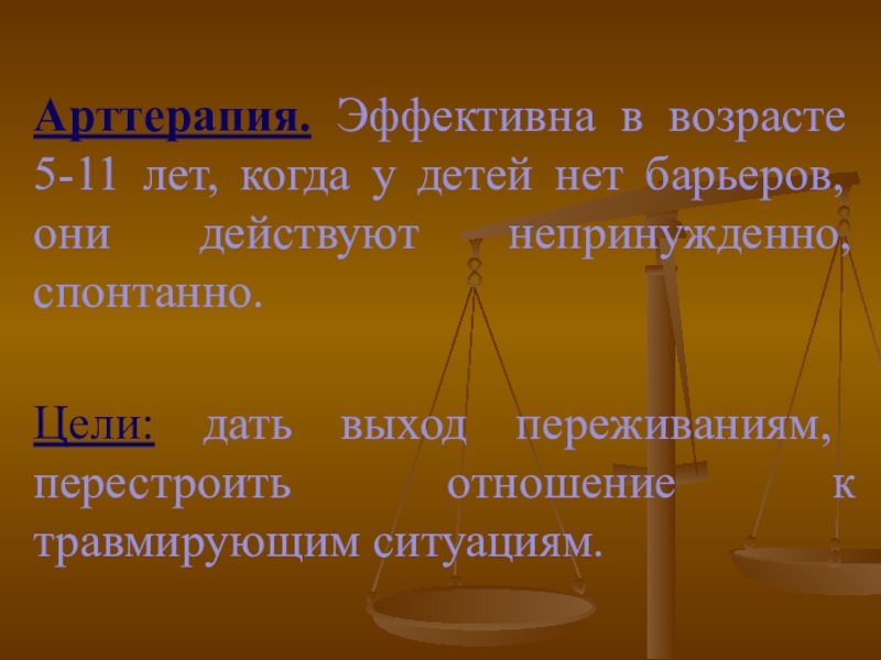 Слайд 6Арттерапия. Эффективна в возрасте 5-11 лет, когда у детей нет барьеров,
