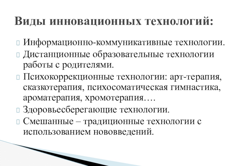 Виды инновационных технологий: