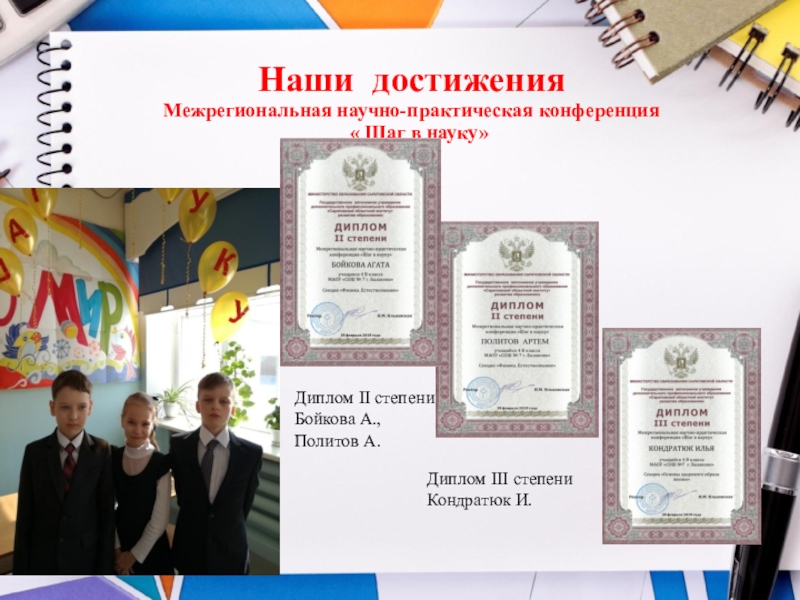 Диплом II степени Бойкова А., Политов А.