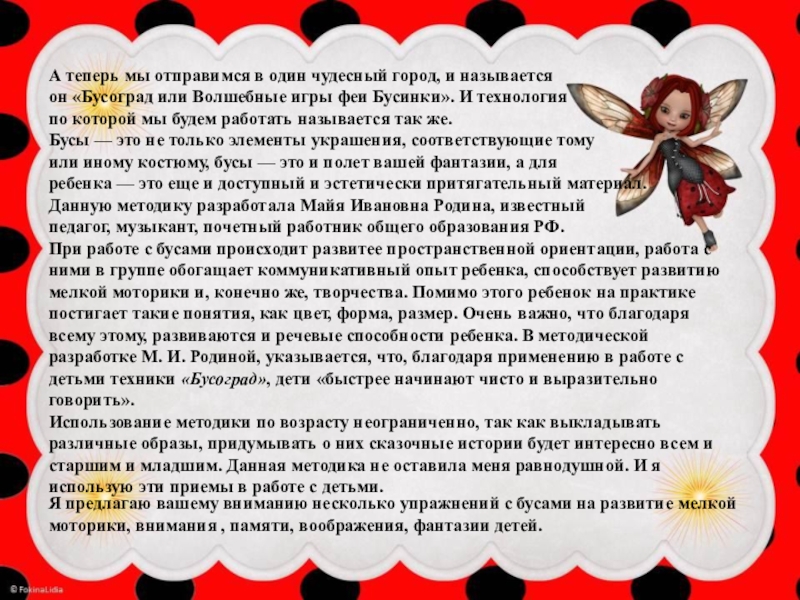 он «Бусоград или Волшебные игры феи Бусинки». И технология