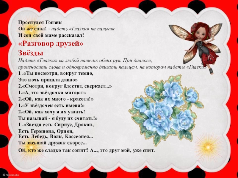 произносить слова и одновременно двигать пальцем, на котором надеты «Глазки»