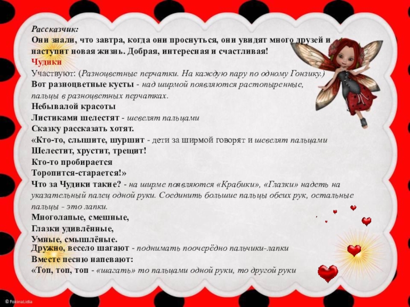 Что за Чудики такие? - на ширме появляются «Крабики», «Глазки» надеть на указательный палец одной руки. Соединить большие пальцы обеих рук, остальные пальцы - это лапки.