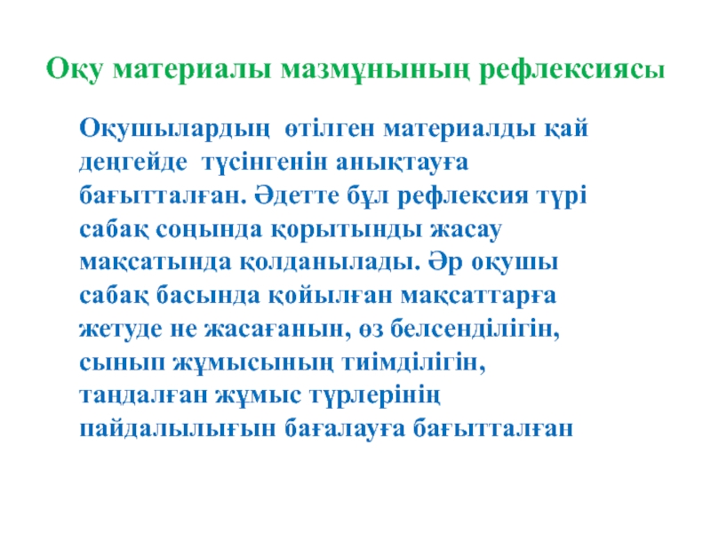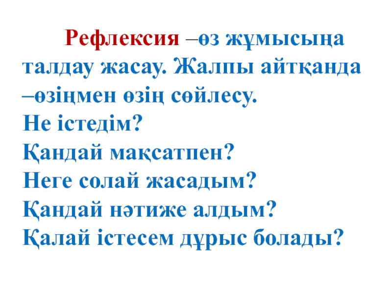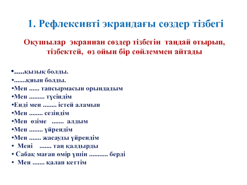 1. Рефлексивті экрандағы сөздер тізбегі