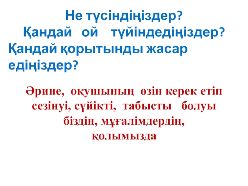 Әрине, оқушының өзін керек етіп сезінуі, сүйікті, табысты болуы біздің, мұғалімдердің, қолымызда