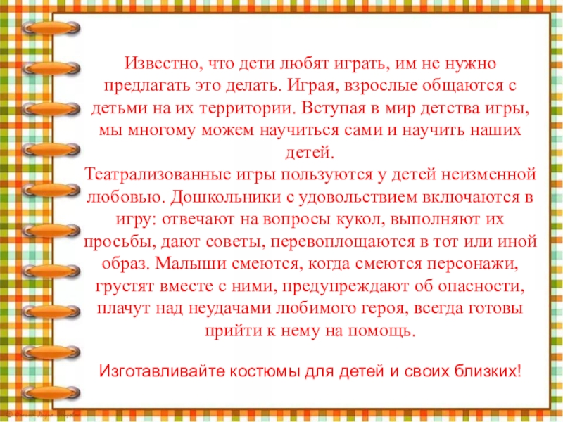 самых эффективных способов воздействия на детей, в котором наиболее полно и ярко проявляется принцип обучения - театрализованная деятельность, которая позволяет ребенку решать многие проблемные ситуации опосредованно от лица какого-либо персонажа.