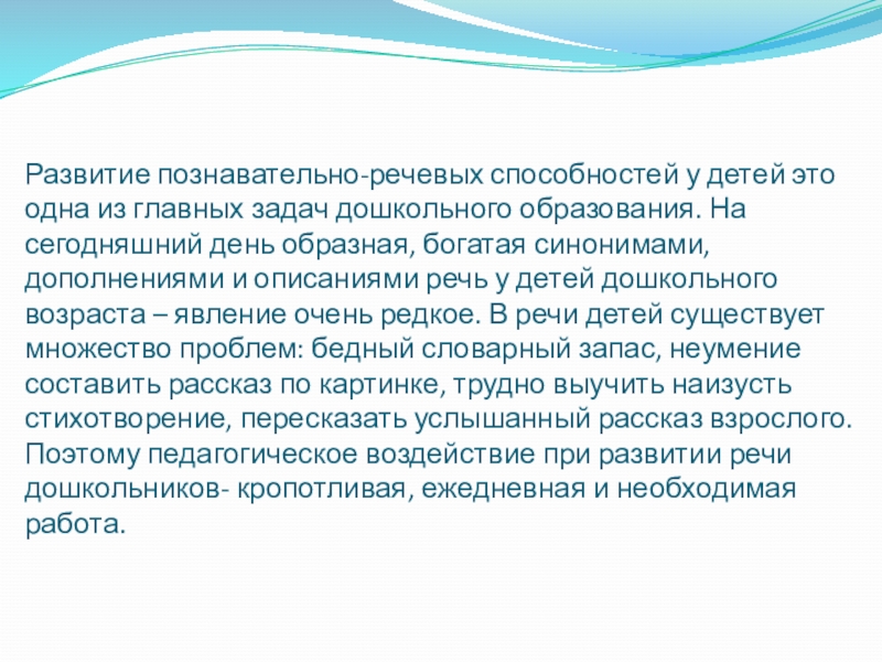 Слайд 2Развитие познавательно-речевых способностей у детей это одна из главных задач дошкольного