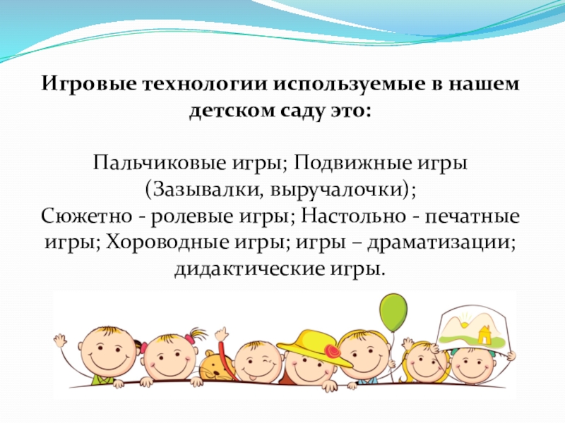 Слайд 6Игровые технологии используемые в нашем детском саду это:
