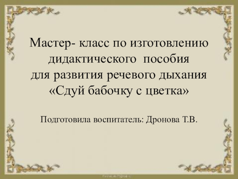Слайд 1Мастер- класс по изготовлению дидактического пособия для развития речевого дыхания «Сдуй бабочку