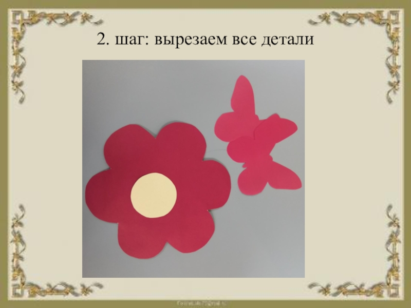 Слайд 51. шаг: обводим все шаблоны: основу цветка на цветной картон, серединку