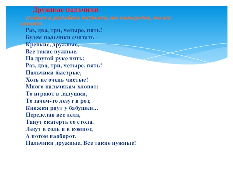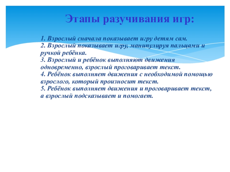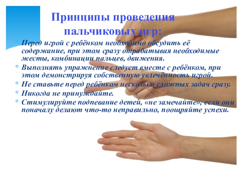 Принципы проведения пальчиковых игр: