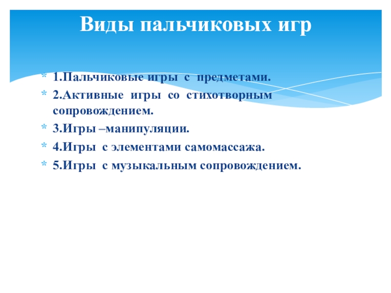 Виды пальчиковых игр