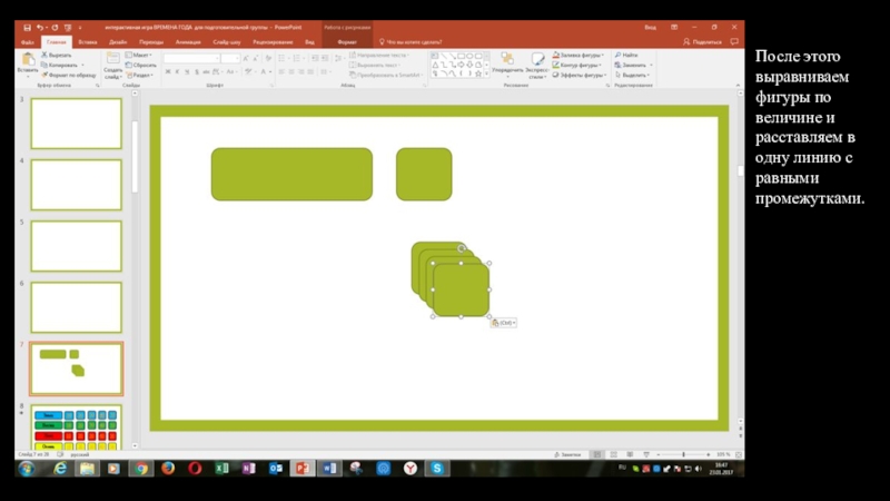 Слайд 6После этого выравниваем фигуры по величине и расставляем в одну линию