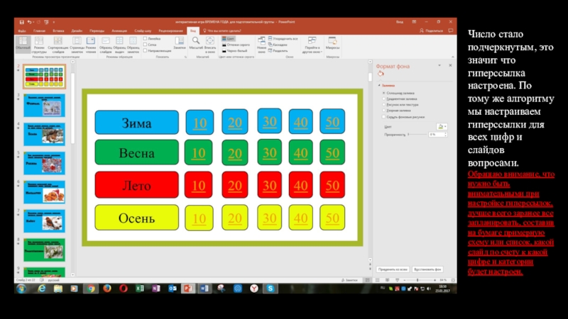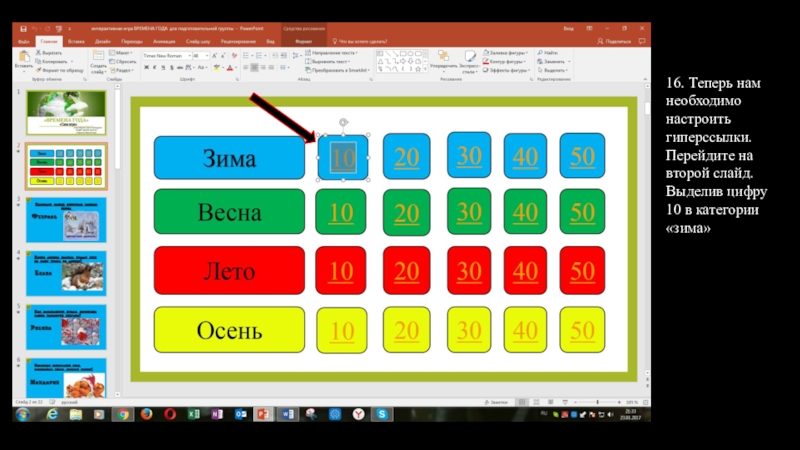 Слайд 21Число стало подчеркнутым, это значит что гиперссылка настроена. По тому же