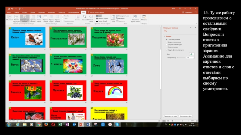 Слайд 1815. Ту же работу проделываем с остальными слайдами. Вопросы и ответы
