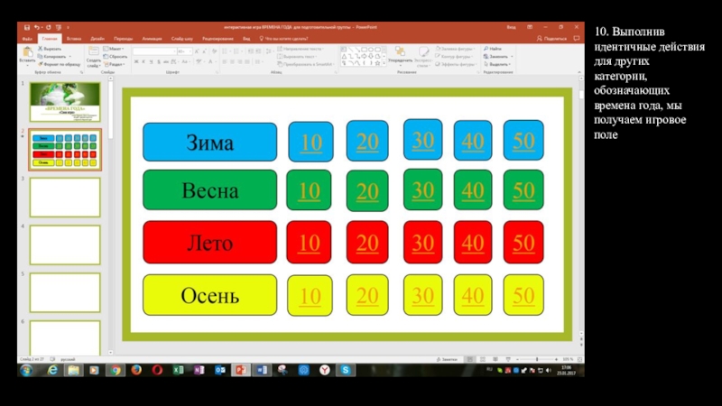 получаем по пять слайдов на каждое время года в соответствующей цветовой гамме.