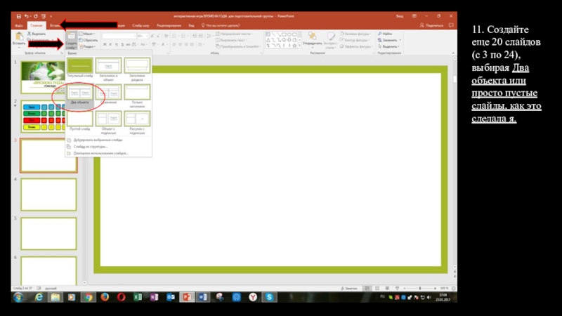 Слайд 1111. Создайте еще 20 слайдов (с 3 по 24), выбирая Два