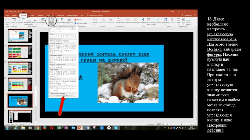 Слайд 2218. Далее необходимо настроить управляющую кнопку возврата. Для этого в меню