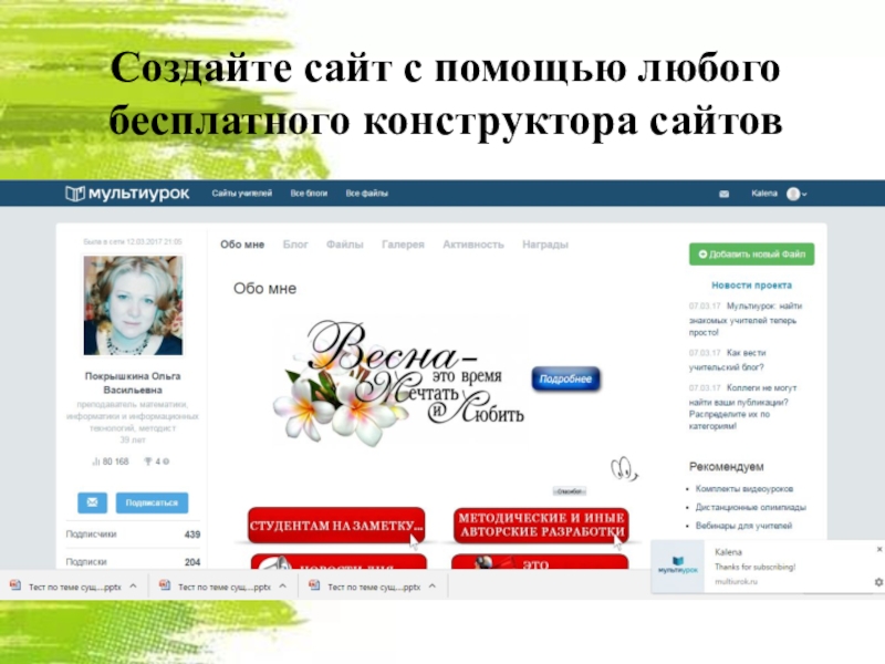 Это сайт презентаций, где можно хранить и обмениваться своими презентациями, докладами, проектами, шаблонами в формате PowerPoint с другими пользователями. Мы помогаем школьникам, студентам, учителям, преподавателям хранить и обмениваться учебными материалами.