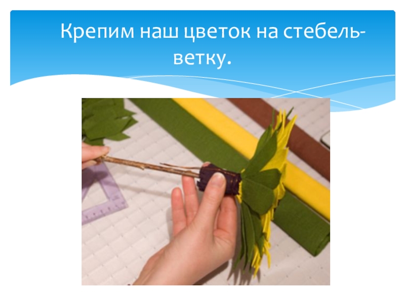 Слайд 18 Крепим наш цветок на стебель-ветку.