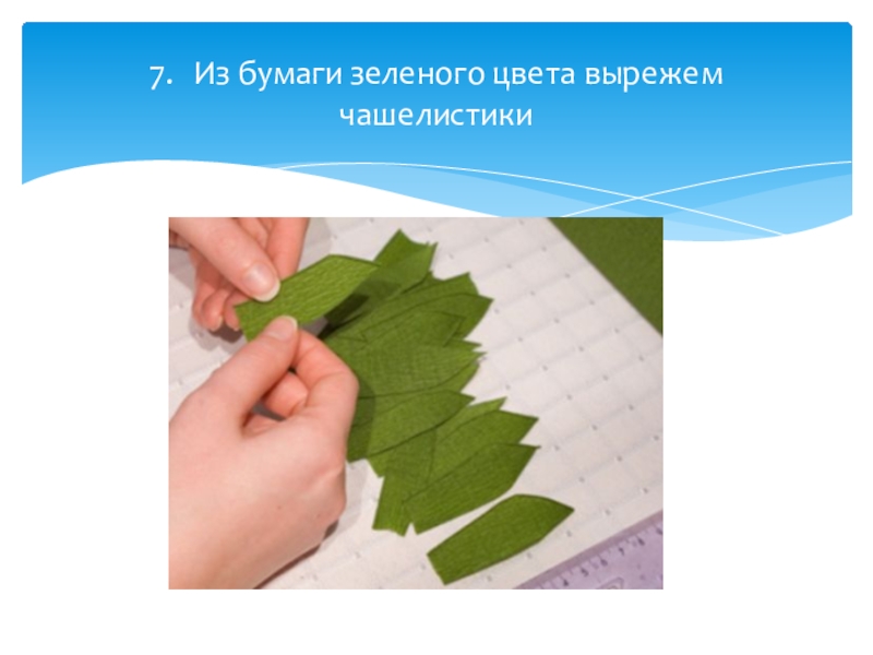 7.	Из бумаги зеленого цвета вырежем чашелистики