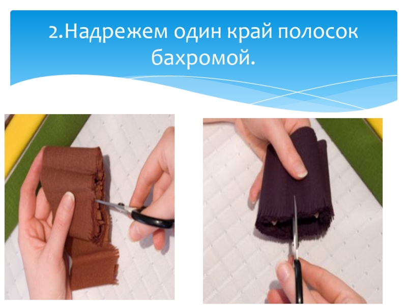 Слайд 52.Надрежем один край полосок бахромой.