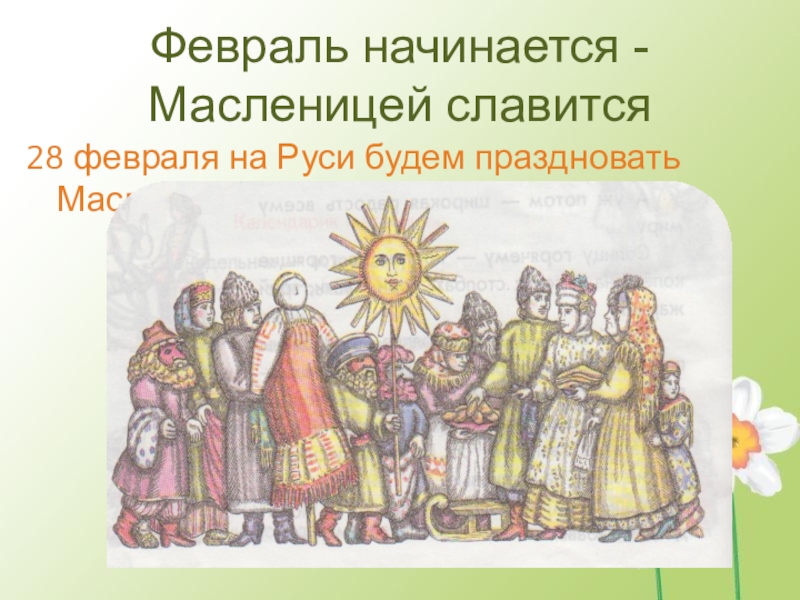 Слайд 4Февраль начинается - Масленицей славится