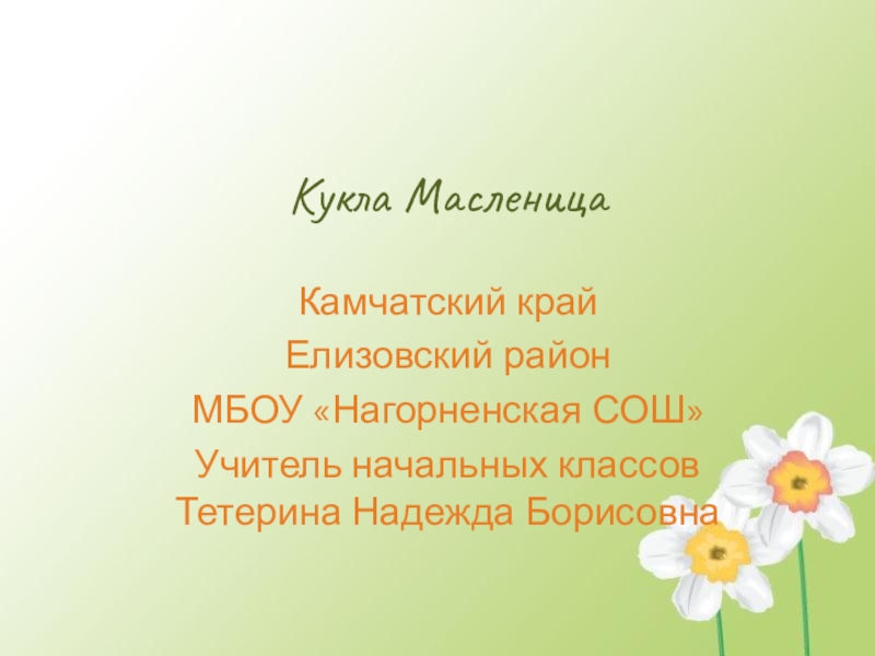 Кукла МасленицаКамчатский край Елизовский районМБОУ «Нагорненская СОШ»Учитель начальных классов Тетерина Надежда Борисовна