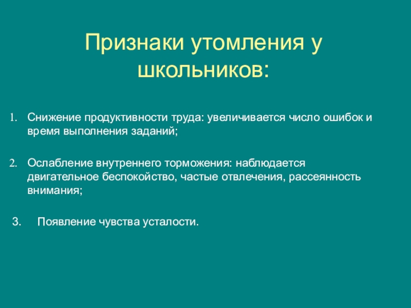 Ослабление внутреннего торможения: наблюдается двигательное беспокойство, частые отвлечения, рассеянность внимания;