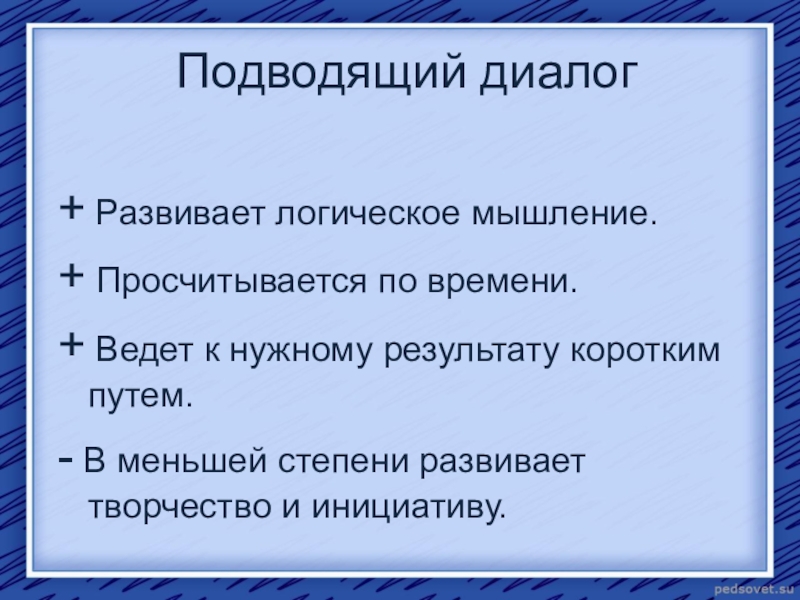 Подводящий диалог – это система вопросов и заданий, которые активизируют и развивают логическое мышление учеников.