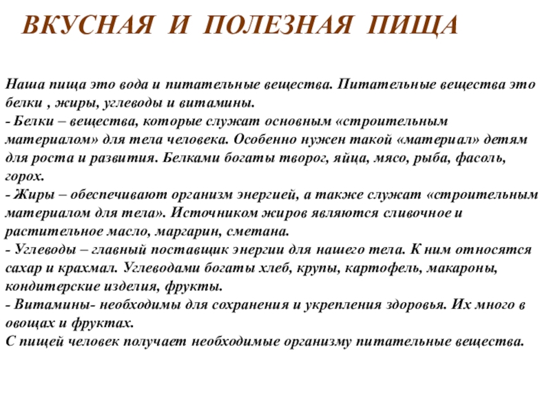 ВКУСНАЯ И ПОЛЕЗНАЯ ПИЩА