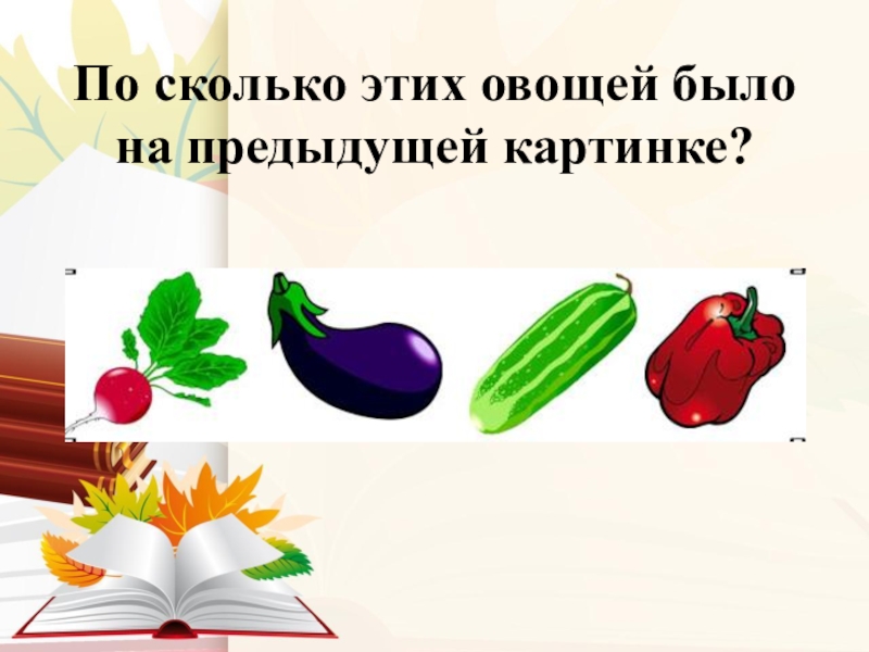 Слайд 13По сколько этих овощей было на предыдущей картинке?