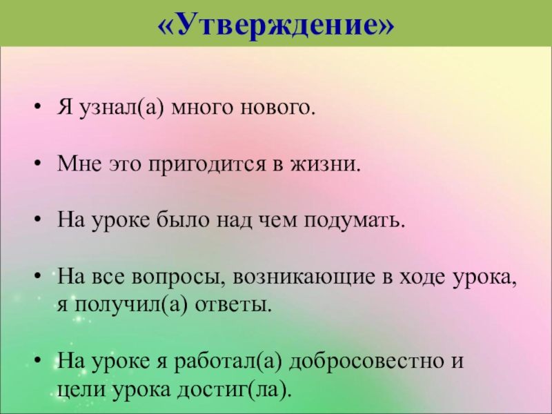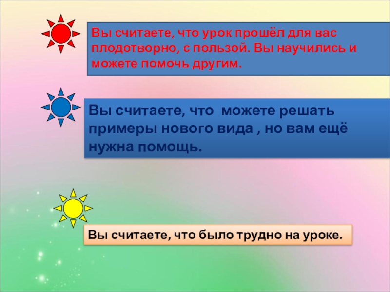 Вы считаете, что урок прошёл для вас плодотворно, с пользой. Вы научились и можете помочь другим.