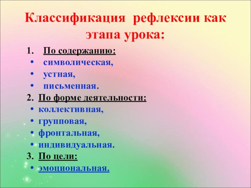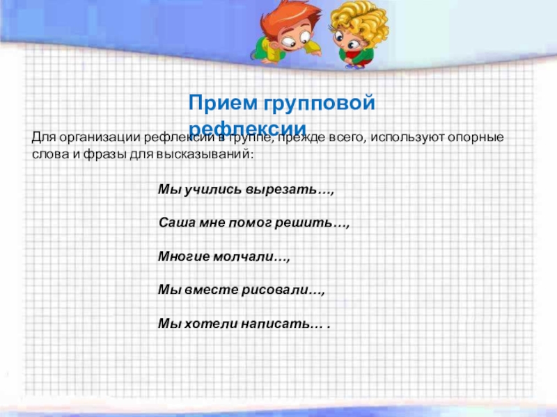 Для организации рефлексии в группе, прежде всего, используют опорные