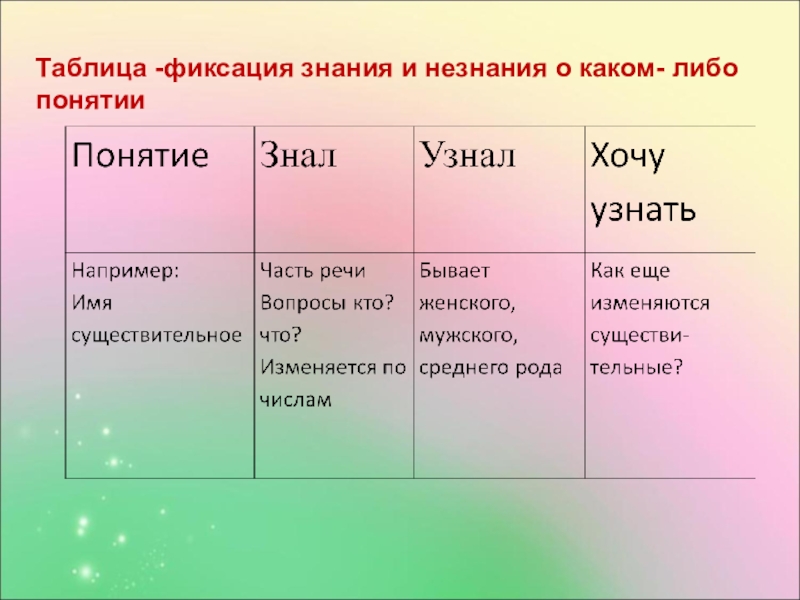 Слайд 64Таблица -фиксация знания и незнания о каком- либо понятии
