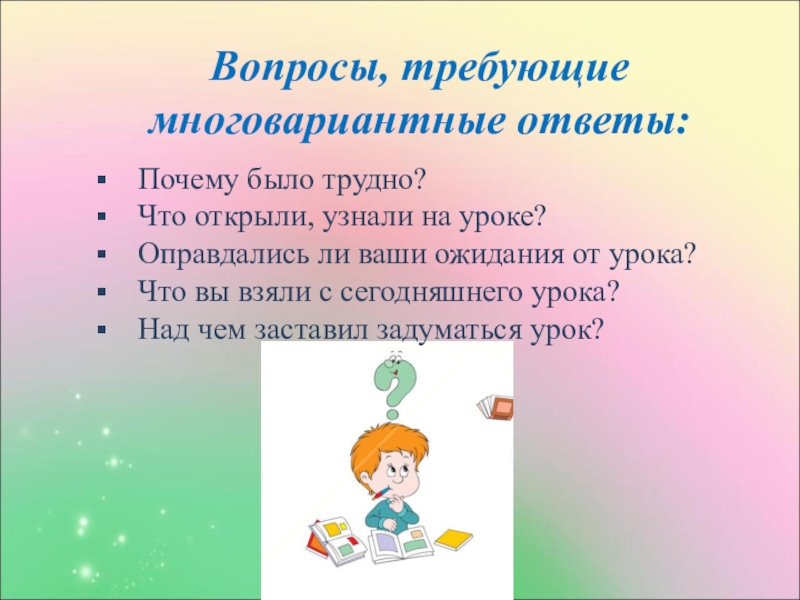 Слайд 61Вопросы, требующие многовариантные ответы: