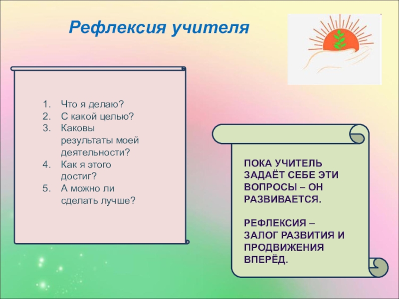 ПОКА УЧИТЕЛЬ ЗАДАЁТ СЕБЕ ЭТИ ВОПРОСЫ – ОН РАЗВИВАЕТСЯ.