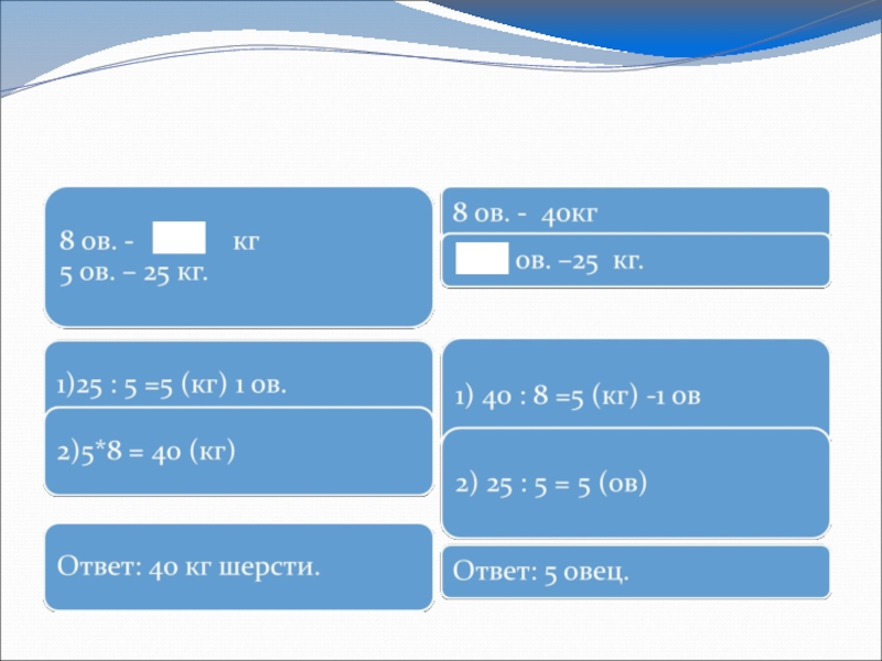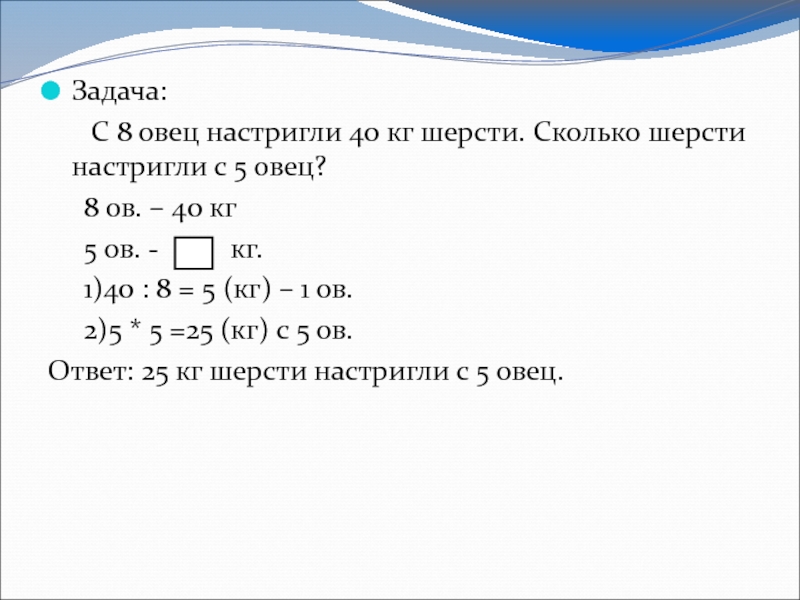 По аналогии прямой задаче составляются и обратные, далее выявляется полное и частичное сходство. Полное сходство в том, что в 1 действии находили, сколько состригли с 1 овцы, различие во втором действии.