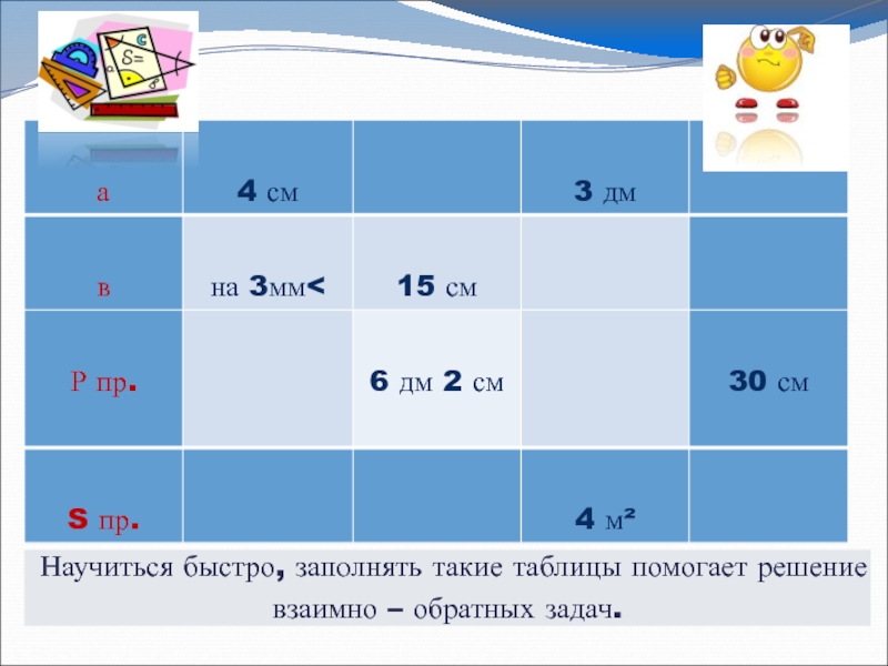 Р кв = а * 4 а = Р : 2 – а а = S : в
