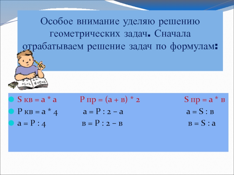 S кв = а * а Р пр = (а + в) * 2 S пр = а * в