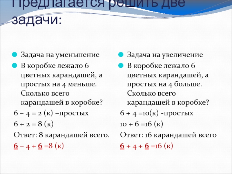 В коробке лежало 6 цветных карандашей, а простых на 4 больше. Сколько всего карандашей в коробке?