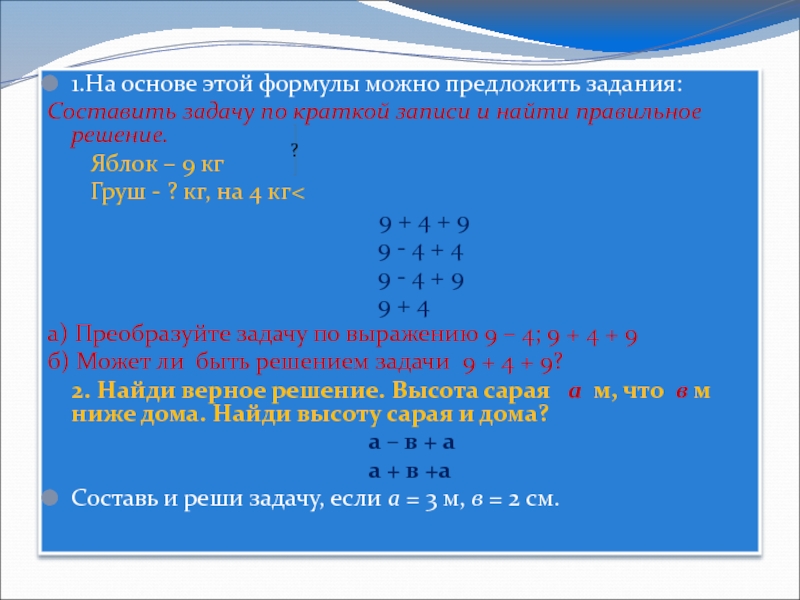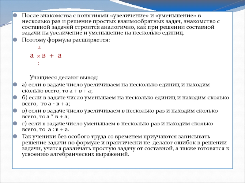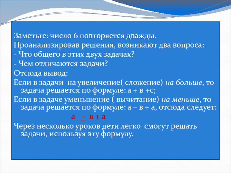 Далее отрабатываются решения любых аналогичных задач.