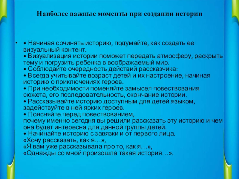 • Рассказывайте историю доступным для детей языком, задействуйте в ней ярких героев.