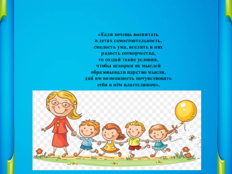 свои знания, пересматривать взгляды и искать новые формы, приемы, технологии при организации образовательного процесса с детьми.