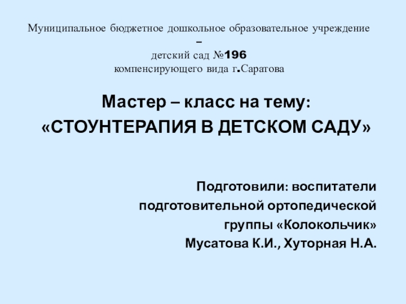 «СТОУНТЕРАПИЯ В ДЕТСКОМ САДУ»