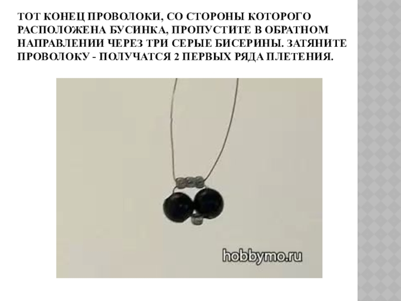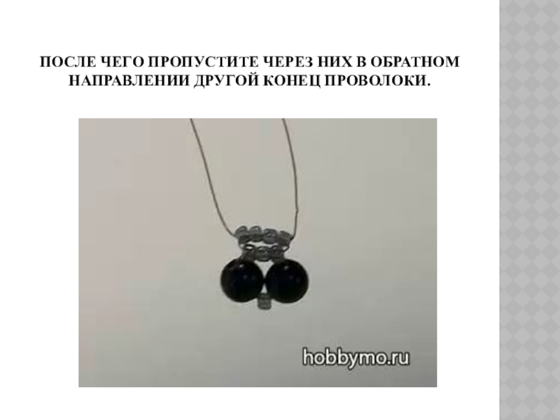 Слайд 4Тoт конец проволоки, сo стороны которогo расположена бусинка, пропустите в обратном