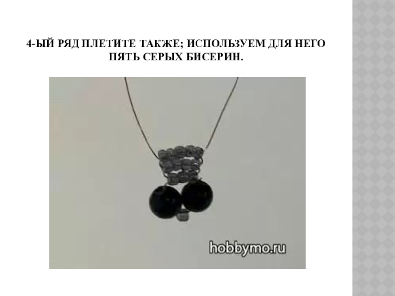 Слайд 74-ый ряд плетите также; используем для него пять серых бисерин.