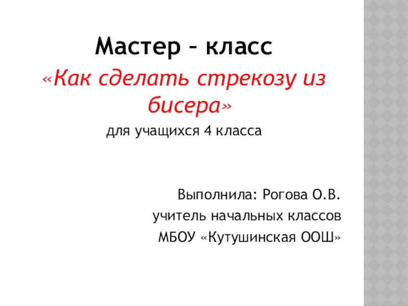 Мастер – класс «Как сделать стрекозу из бисера»для учащихся 4 класса Выполнила: Рогова О.В.учитель начальных классов МБОУ