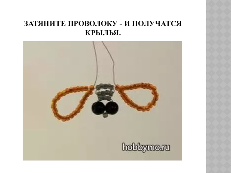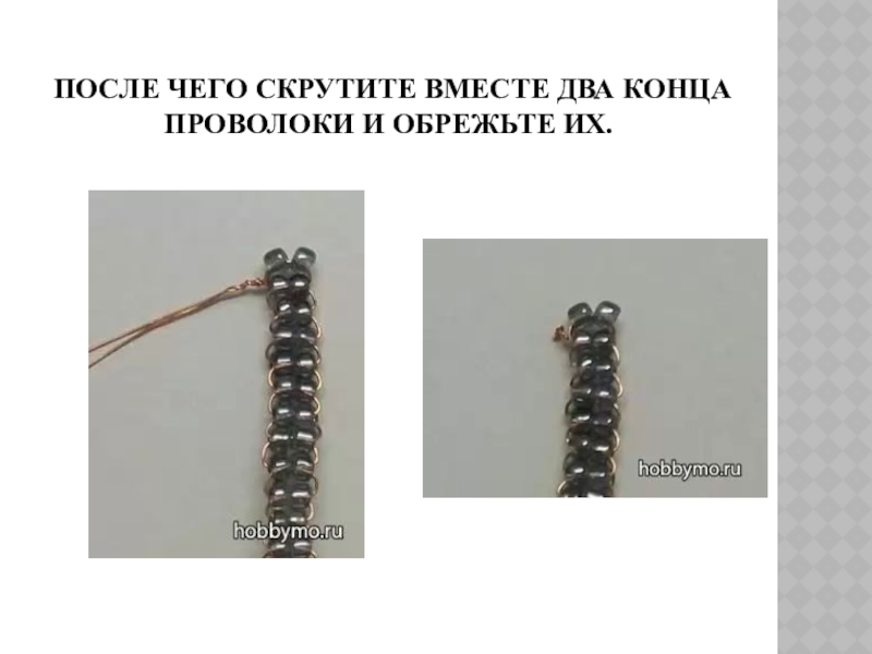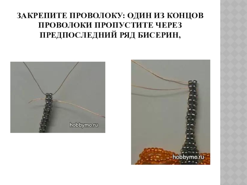 Слайд 9После чего пропустите каждый из концов проволоки через оранжевую бисерину, ближайшую